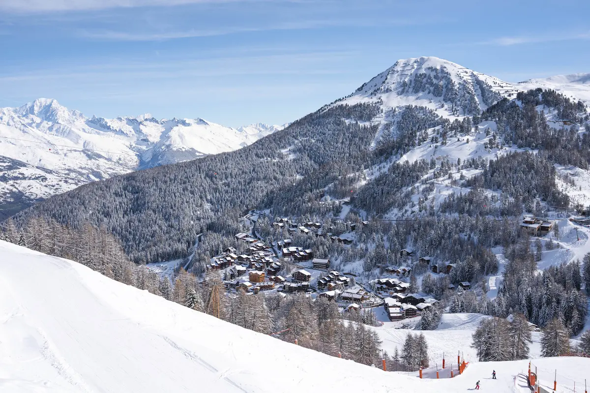 With varied slopes for all levels and a peak over 3,000 meters accessible by ski or on foot, La Plagne offers majestic views of Mont Blanc, the Beaufortain, and the Vanoise mountain ranges.